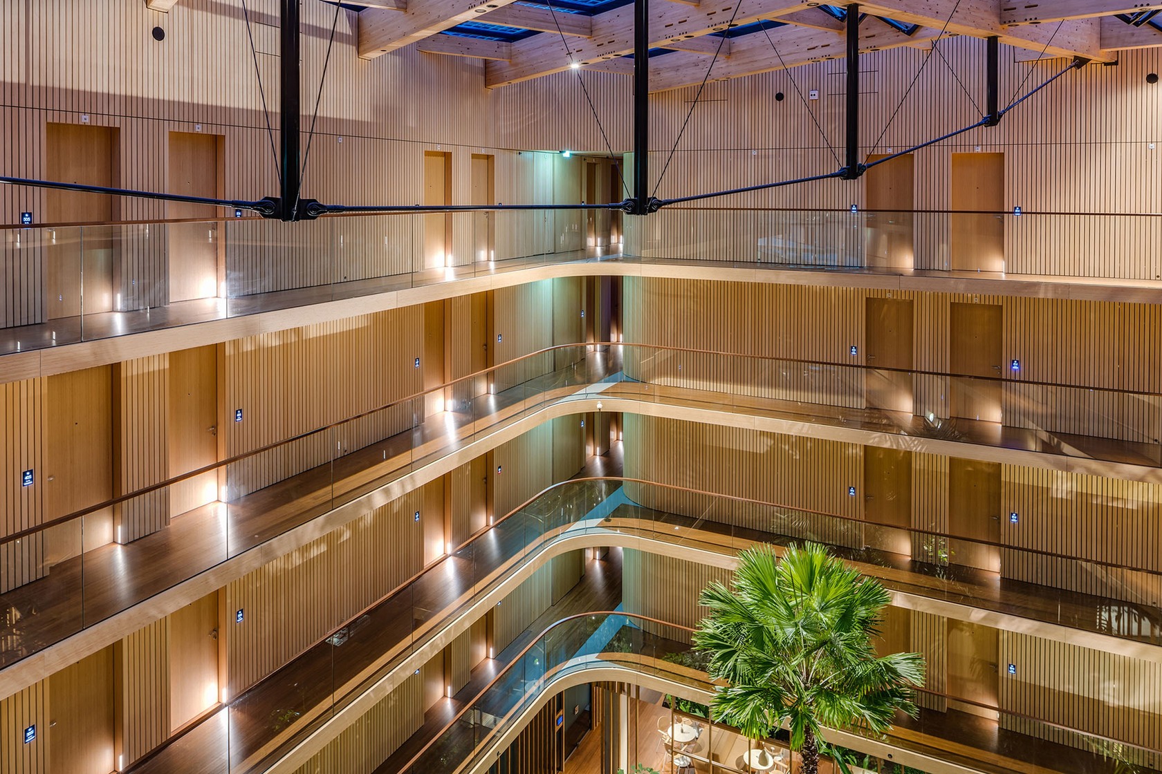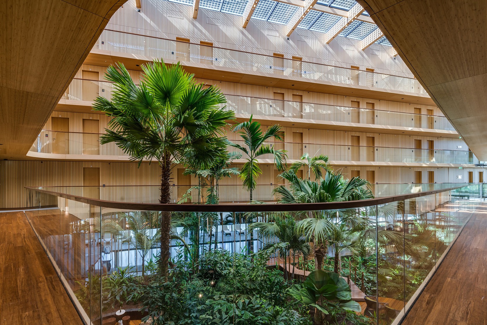 One that really sticks with me is Hotel Jakarta in Amsterdam, which was designed using bamboo from our partner Moso. Bamboo is an incredibly sustainable material—it grows quickly, absorbs CO2, and has the strength of tropical hardwood. The design of the hotel is stunning, and bamboo was used throughout, from the floors and walls to the ceilings and furniture. It’s a perfect example of how sustainable materials can be both functional and beautiful.