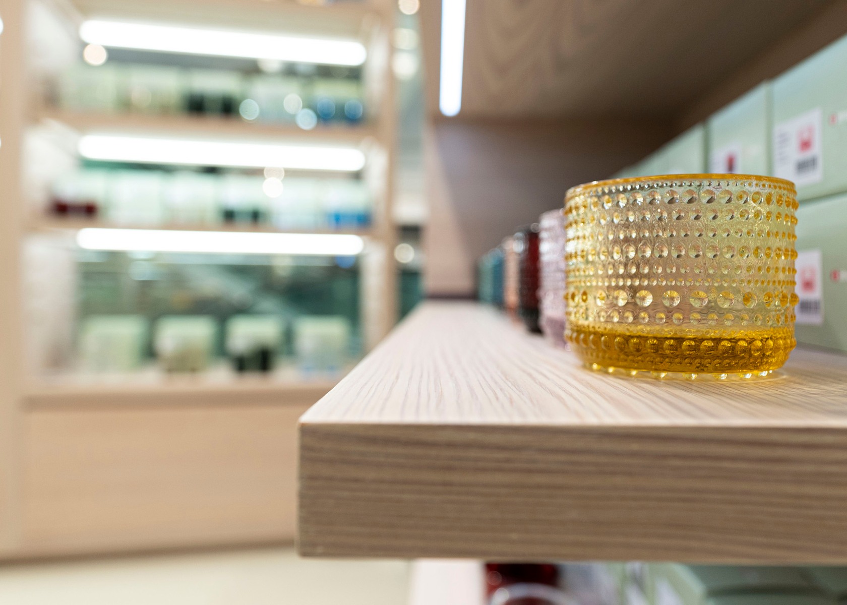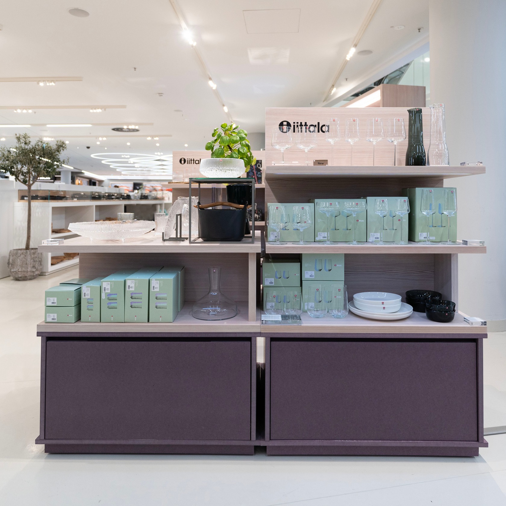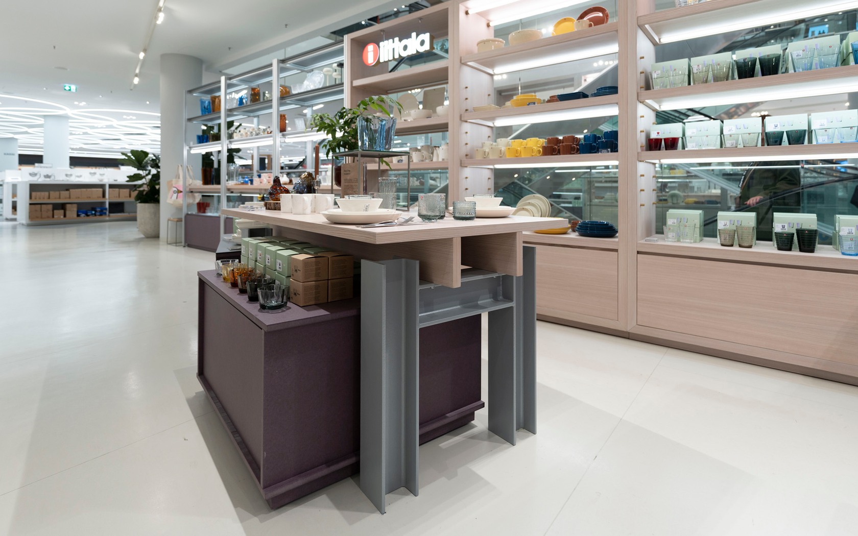 The iittala shop-in-shop was a collaboration between Tchai and Futudesign. Futudesign initiated the concept. Tchai took care of the materialization, engineering, production and installation.