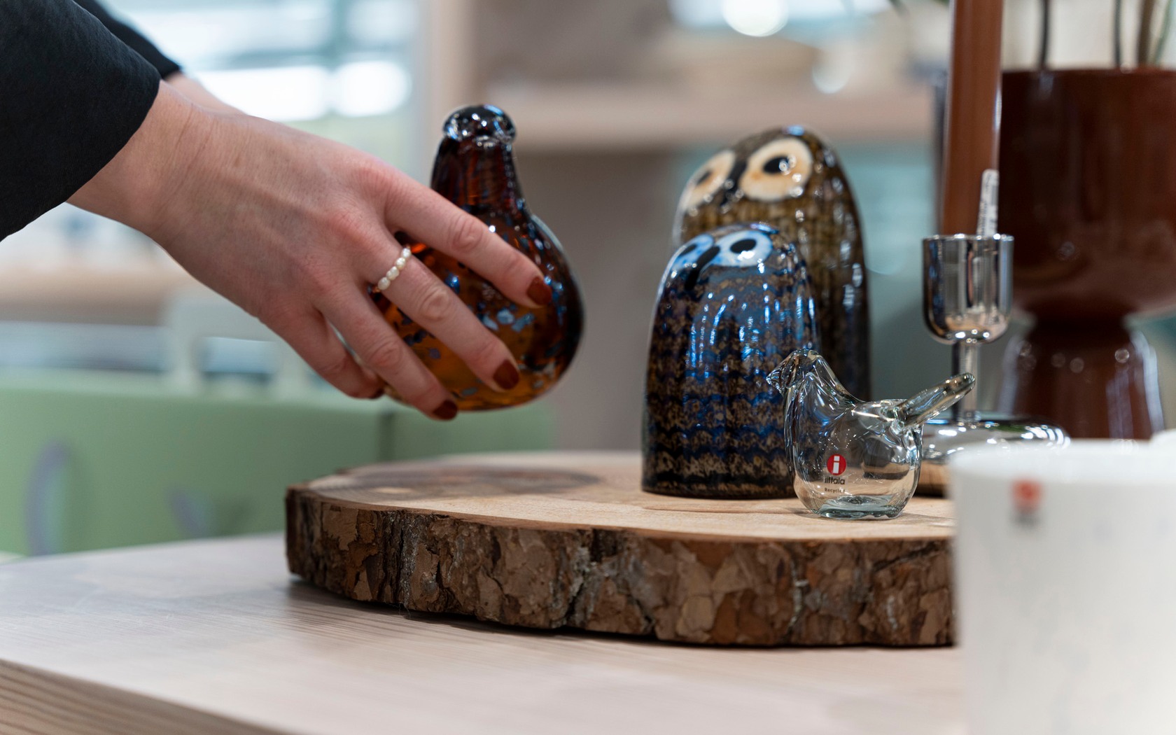 A charming addition to the concept, comparing it with previous compositions, is the lightning. Take a closer look and discover that it has been added in the furniture to elevate the product presentation. Another addition that gives the product presentation that next level look is the illuminated iittala logos.