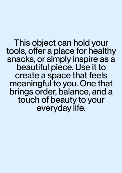 It holds your tools, offers a place for healthy snacks, or simply inspires as a beautiful object. Use it to create a space that feels meaningful. One that brings order, balance, and a touch of beauty to everyday life.