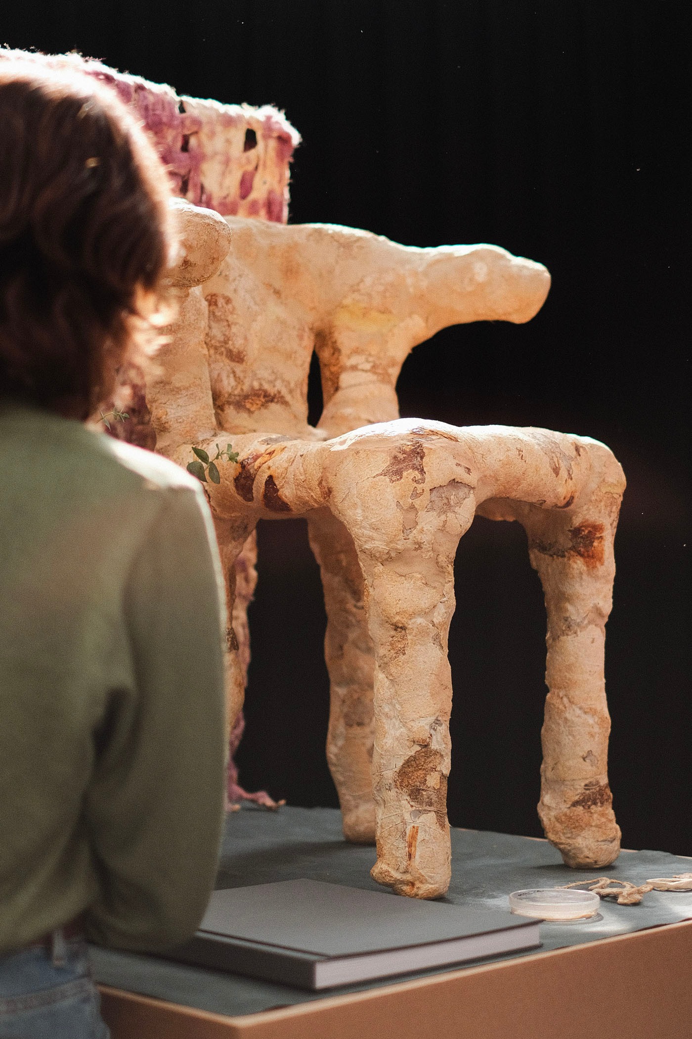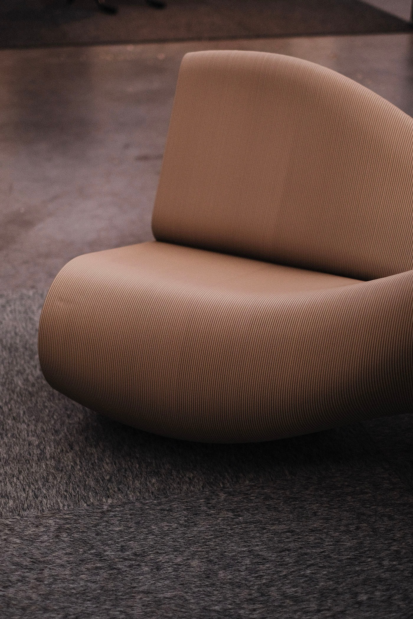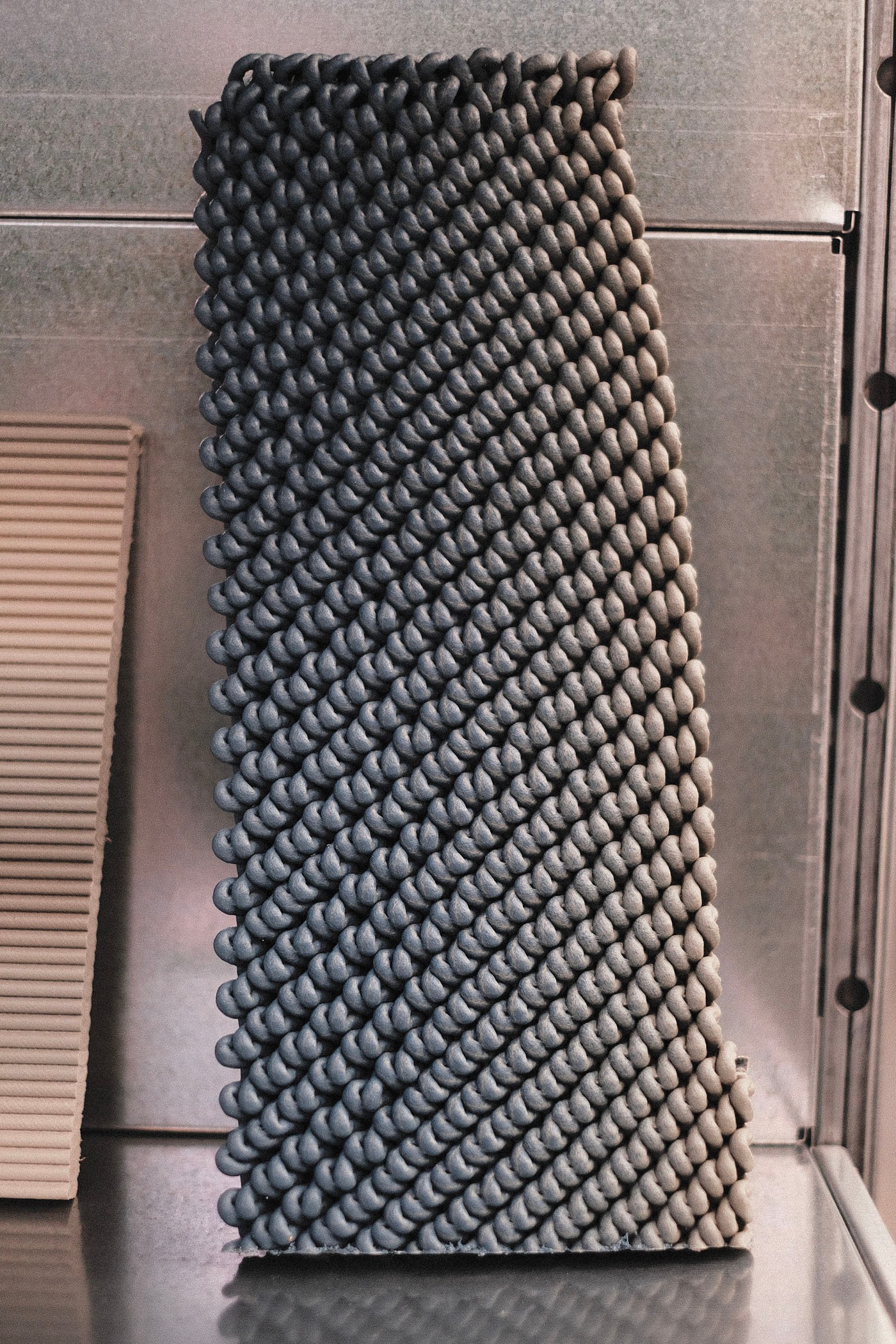 A big trend: large-scale 3D printing with robotic arms. Where last year there was one company showcasing this, now there are several. The results? Smooth, complex forms that feel more crafted than printed. Thanks to better materials, advanced software like Grasshopper, and even AI-generated designs.