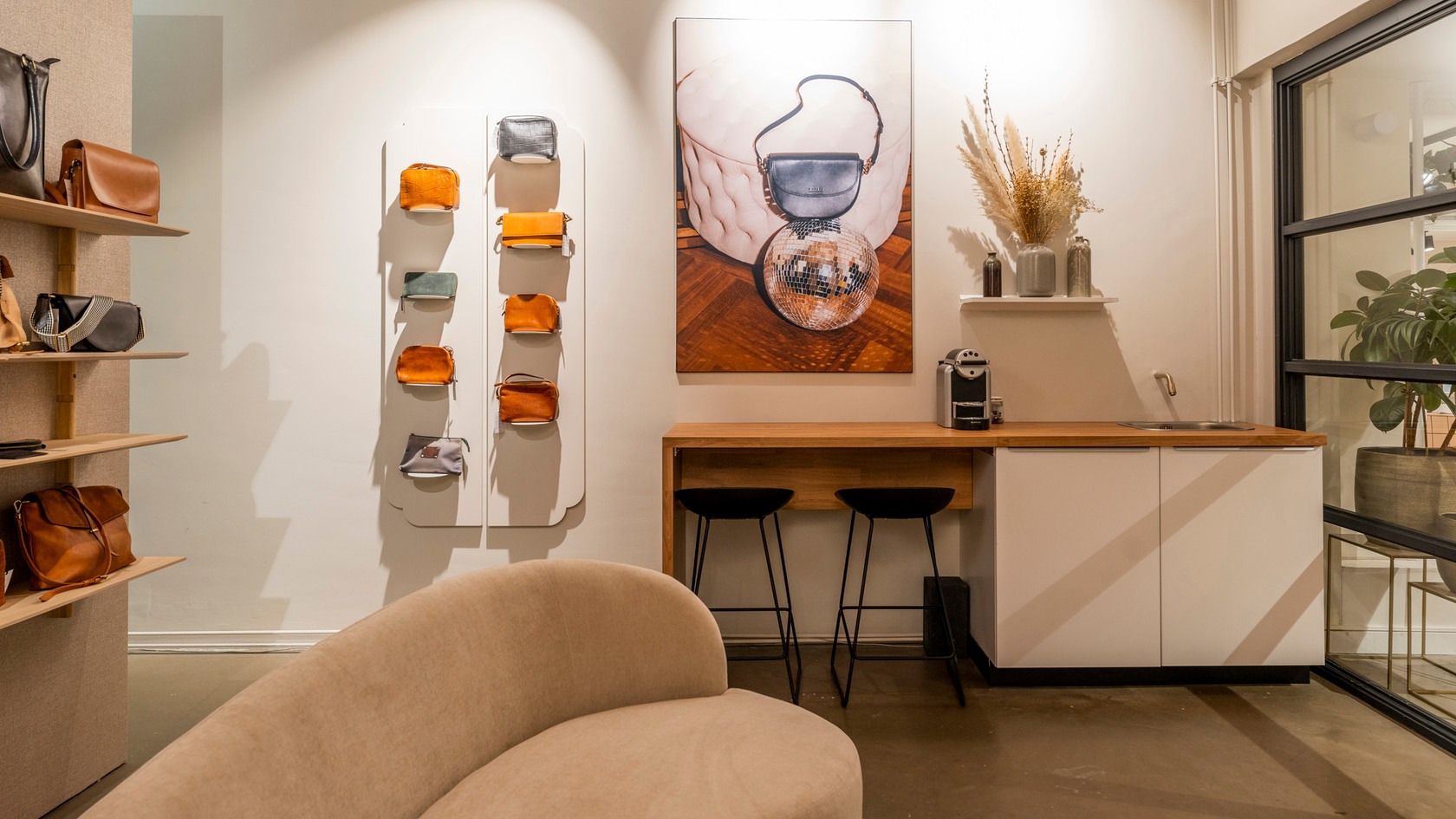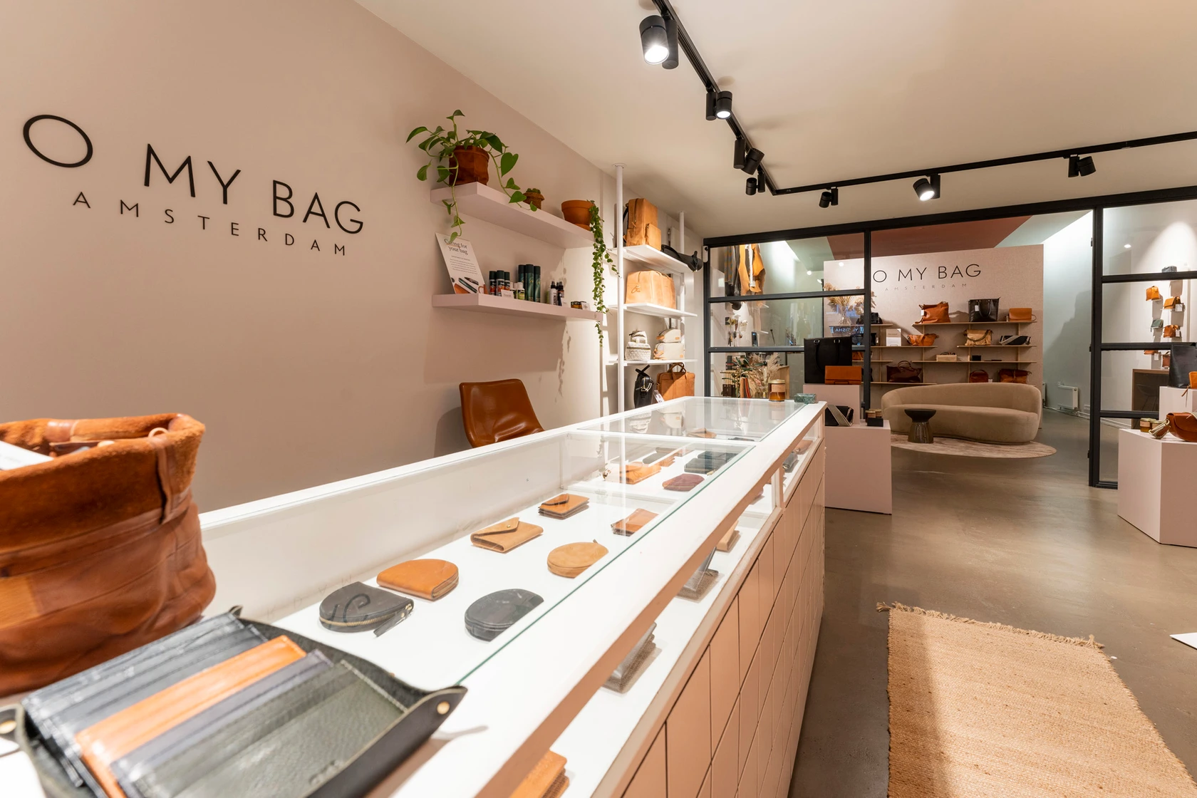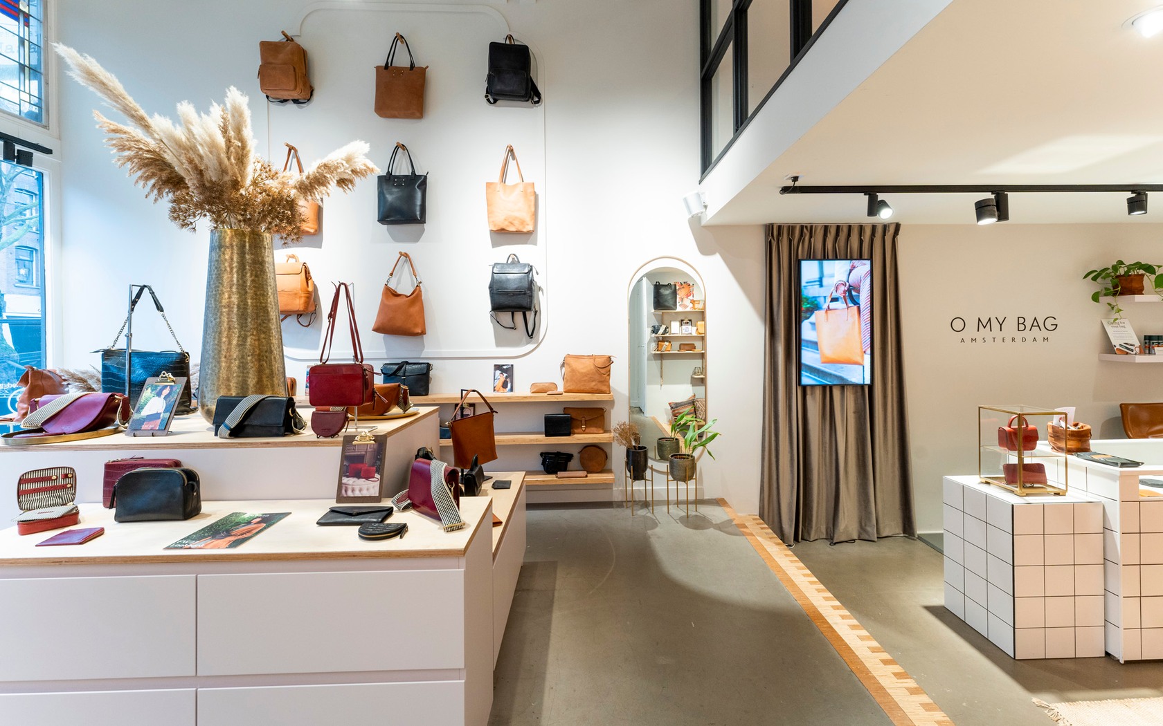 For sustainable leather bag brand O My Bag, we were entrusted with the complete realization of their flagship store in Amsterdam. This was a natural progression from our previous collaboration, where we designed and delivered their very first brand store.
