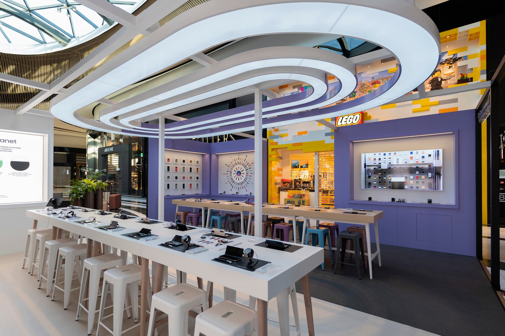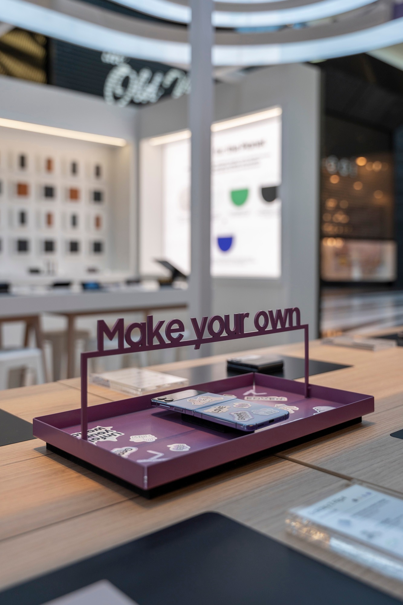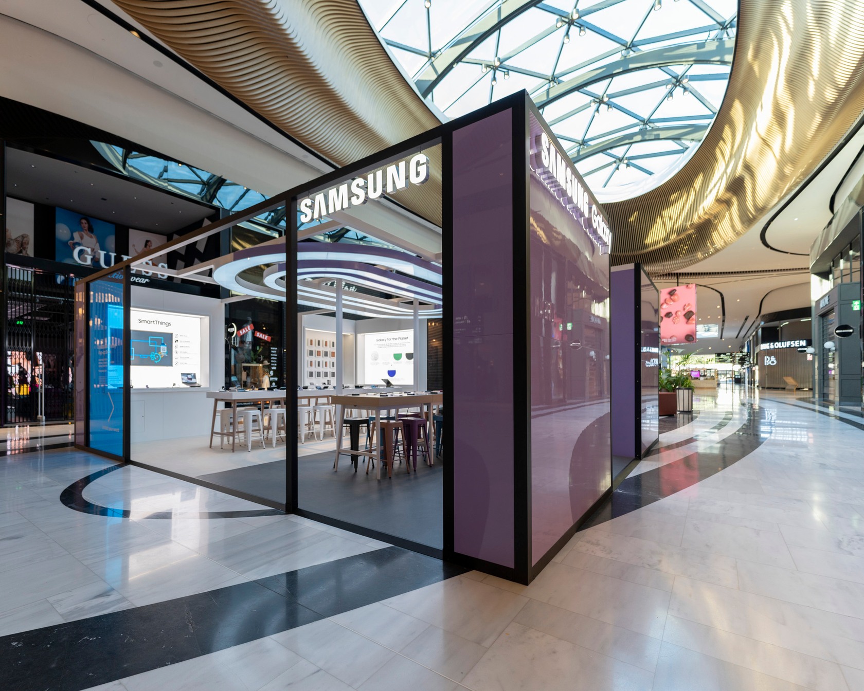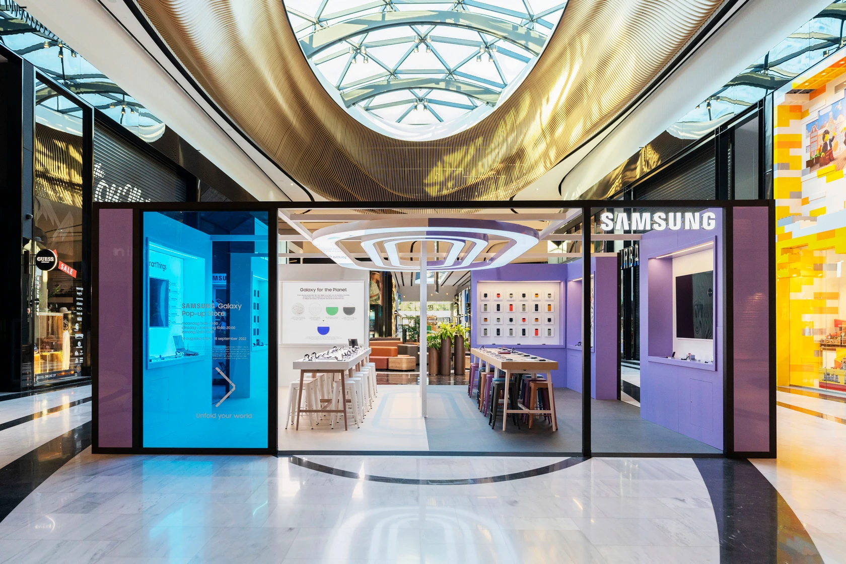 Designed to seamlessly integrate Samsung's foldable devices, the pop-up store features two distinct sections dedicated to Fold and Flip technologies. Visitors are invited to explore and experience these advancements firsthand at tables positioned at the center of the space. In addition to devices, the retail environment also highlights Samsung's range of wearables, accessories, and other smart innovations.